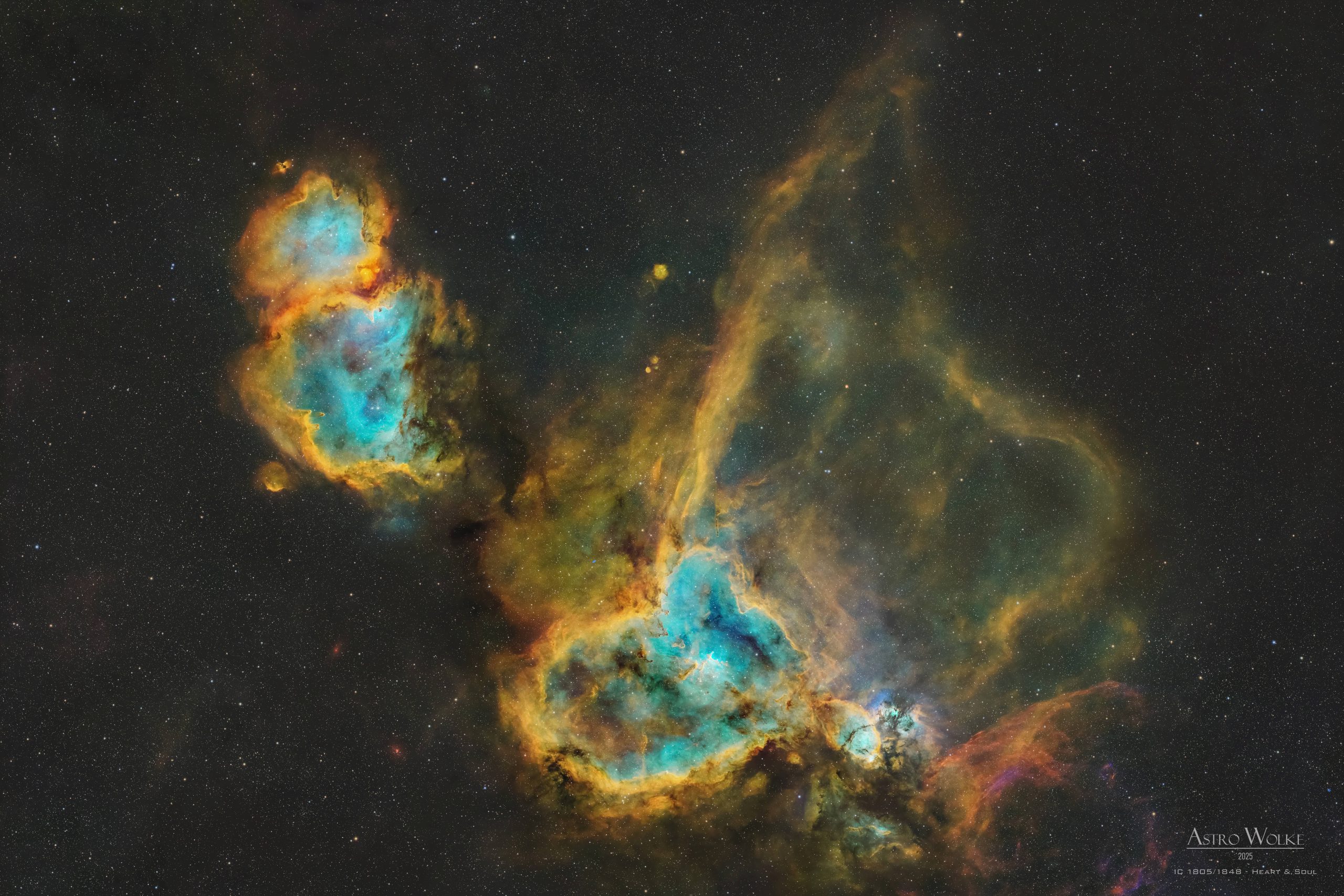 In the constellation Cassiopeia, about 7,500 light-years from Earth, lie two impressive star-forming regions: the Heart Nebula (IC 1805) and […]